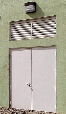 Ventilation Grilles are often required for cooling and to provide air transfer around all types of plant and equipment. Ballistic louvers (sometimes also referred to as bullet louvers or bullet louvres) provide ballistic or bullet protection and also air ventilation at the same time. A ballistic or bullet air vent as shown above can be installed either within the recess of a wall or panel, or even within a doorset as shown below. The bullet louvre vents can also be full door height and therefore produce a ballistic protected louver doorset for added flexibility and also airflow at the same time.