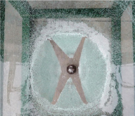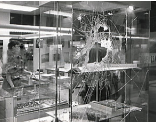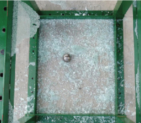 The falling ball only broke the outer surface of the glass and the rigidity of the integral structure remained sufficiently strong to prevent criminals from intruding.