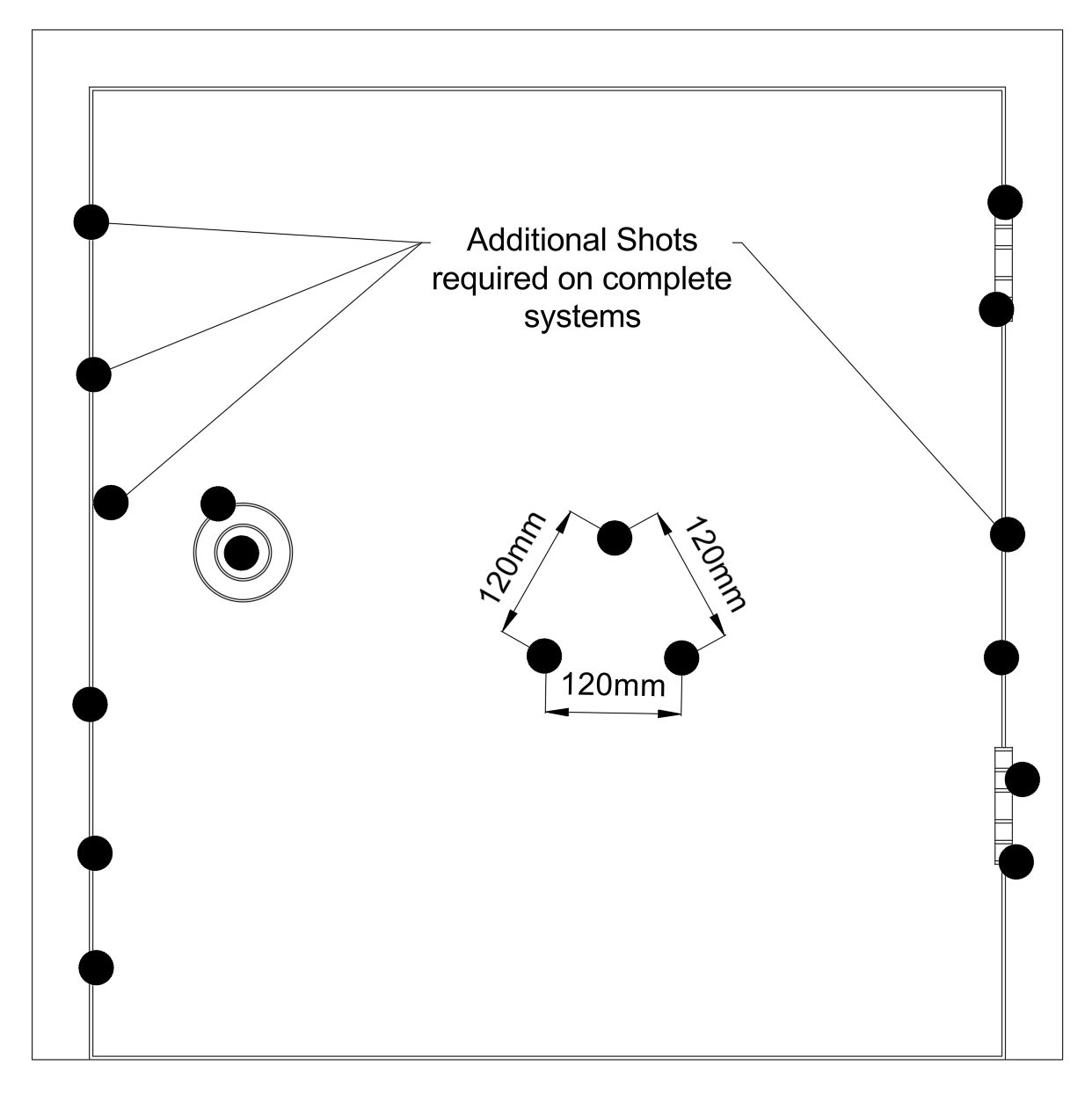 o Shot centres marked with “X” are 120 mm apart.
