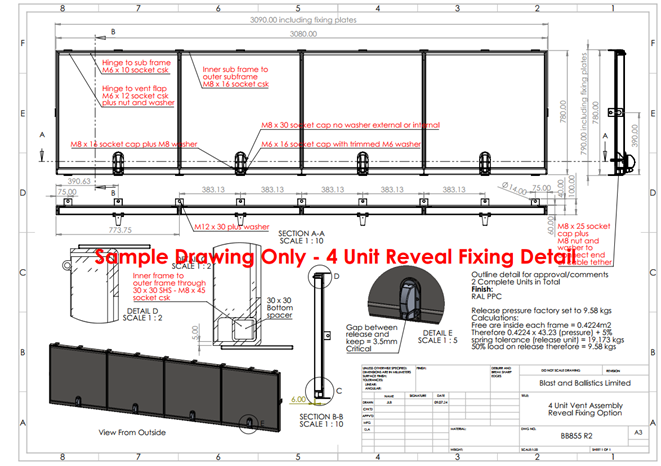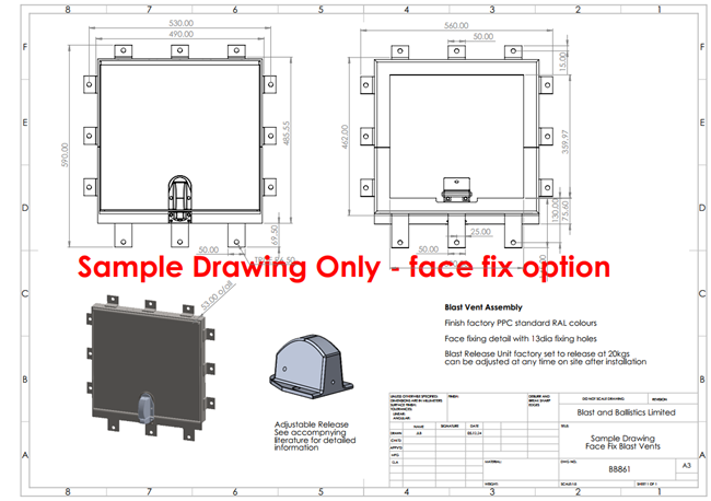 All units are made bespoke to a customer's required release pressure. The units use an FM Approved Blast Release Mechanism and can also be adjusted on site if required to accomodate smaller/larger release values.
