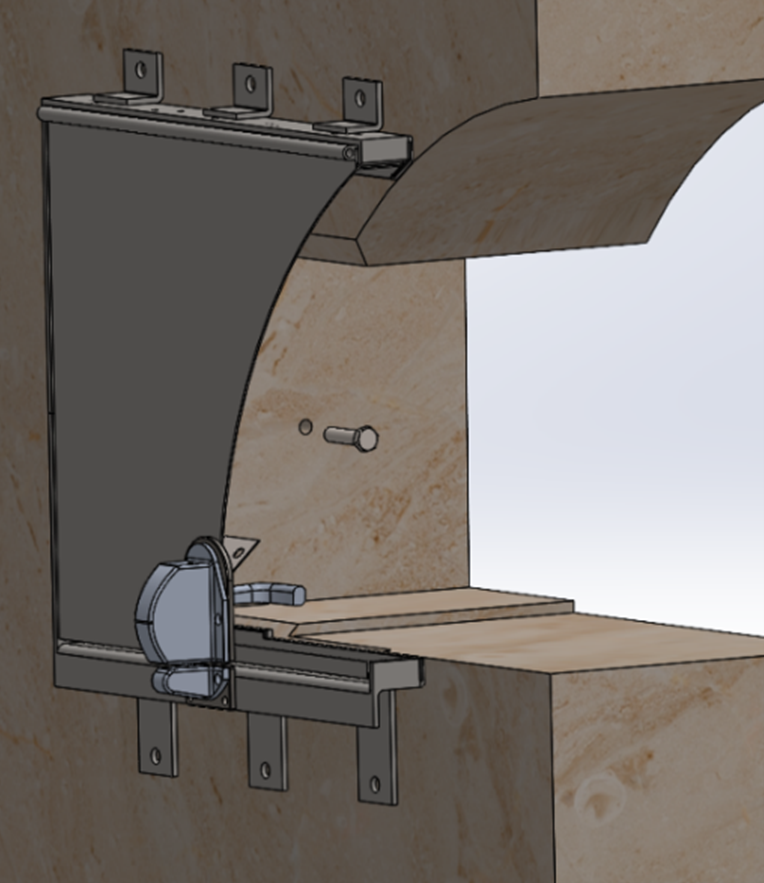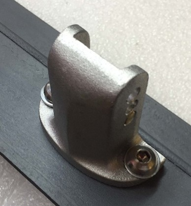 Fit one end to one of the outer assembly fixing bolts (suitable for M12 fixings) and the opposite end to the angled plate which is bolted through underneath the inner pull handle. This will accept an M8 nut and bolt with washer.