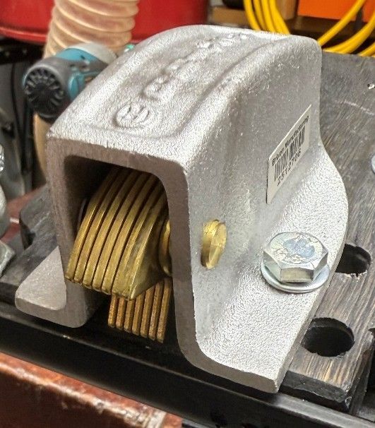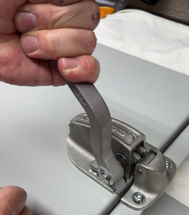 Turn the adjusting screw counter-clockwise to its loosest position, making sure that the square nut does not come off the ball pin and the nut has full thread engagement. Using the Latch Release Force Adjustment Chart (below) as a guide, tighten the adjusting screw clockwise a half turn at a time until the desired pressure setting is reached. It should be possible to feel the adjusting screw slipping into the relaxed position at each half turn. For example, if you wanted 107 lbs. pressure setting on a #4 latch, you would tighten the adjusting screw 10 half turns (10 x 4.935) + (58 lbs. min.) = 107 lbs.