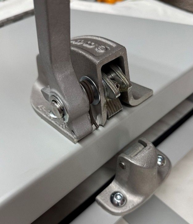 Hinges are factory fitted and are fabricated in stainless steel. They require little maintenance other than lubrication with general purpose oil after installation. Lubricating the hinge on a regular basis can also be carried out at the same time as regularly re-applying fresh grease to the Release Mechanism. Regular checking and maintenance is very important. Check all fixing and retaining bolts especially after an event.