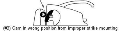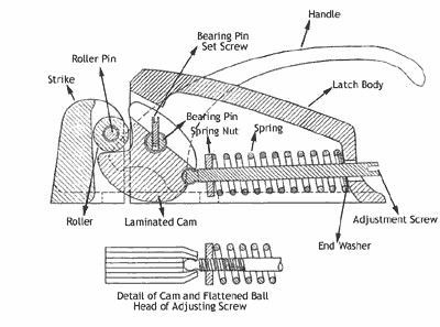 Because of the rather large tolerances involved in casting, each latch/strike combination must be individually aligned, and alignment must be rechecked whenever latches are replaced to avoid possible malfunctions as listed below.