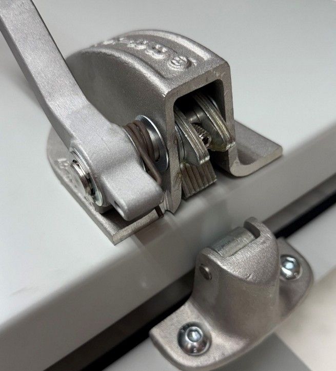 The latch and strike assembly must be securely mounted so that the cam is centred on the strike roller and the assembly is perpendicular to the door-frame line. The distance between the latch and strike housing should be 1/16” to 3/32” for #91 models and #1 models (#1 model no longer for sale).