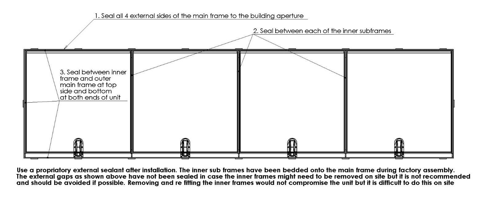 The assembly can be broken down into smaller components, but this is not recommended if it can be avoided. Realigning components on site is much more difficult than in a factory environment. In addition, the inner frame assemblies are sometimes bedded on sealant, and this would have to be broken and reinstated making the entire process arduous.