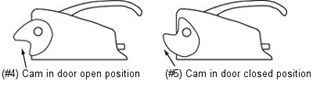 The recommended procedure for closing a door equipped with the 3H, 83H, 93H, 4H, 84H or 94H latches is to fold the handle back immediately prior to closing or, better, to first open and then close the handles. When folding the handles back, the cam should remain in the “open” position (illustration #4). If for any reason the cam is in the “closed” position (illustration #5) while the door is open, the latch and/or its mounting is defective, and the door would rebound open instead of latching..