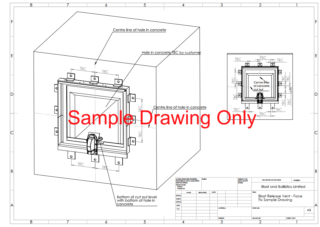 Our Blast Release Vents are manufactured to customer's required dimensions and wall construction. Our products are entirely bespoke and custom made for each project and application. We offer several fixing options as detailed below.