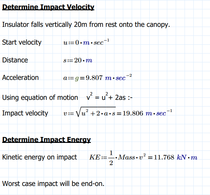 Highlighted here are examples of where various combinations of mass, velocity and penetration (also derived from fragmentation) challenge us in different ways. A protective canopy, within which an operative is working, is subject to the potential of a high voltage insulator weight nearly 90kgs falling from around 20 metres. The roof panel and supporting assembly needs to mitigate this and the roof detail in particular needs to deform no more that 100mm to avoid the potential of injury to the operative inside as the roof panel itself begins to collapse.